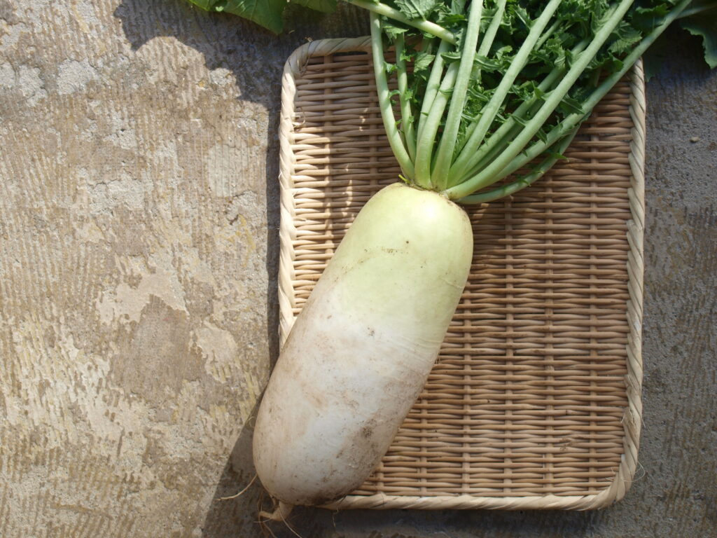 ・辛みがないサラダタイプのミニダイコン。一般的な大根によりも小さいサイズなので使い勝手が良いのも嬉しいポイントです。三竹さんのウリである甘みも感じられます。三竹さんの言葉を借りるなら”梨のような大根”です。