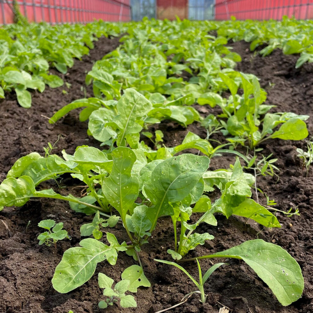 ルッコラは露地栽培とハウス栽培を併用して通年出荷を行っています。育てやすい春と秋は路地の畑を、栽培の難しい夏と冬の時期はビニールハウスの中で遮光対策や保温対策を行いながら栽培しています。ルッコラ栽培において気をつけていることは、土づくりと水分管理、そして雑草対策です。土づくりは、種まきの1ヶ月前くらいから準備を始めます。その時の土の中にある栄養素の過不足に合わせて肥料の量を調整したり、定期的にトラクターで畑を耕し、微生物が活動しやすい環境作りをしたりすることで、ルッコラが育ちやすい環境を整えていきます。また、露地栽培の場合は天気に左右されるので難しいのですが、ハウス栽培ではルッコラの成長フェーズや、その時の天候や気温に合わせて水の量を調整しながら与えています。特に、成長に水が必要な一方で、水を与え過ぎると根っこが呼吸出来なくなってしまうため、その辺りの見極めを気をつけながら水分管理をしています。また、これからの暖かくなる季節から気をつけなければいけないのが雑草対策です。雑草に呑まれてしまうと生育不良や病気にもなりやすくなってしまう為、こまめに道具や人の手で除草を行っています。