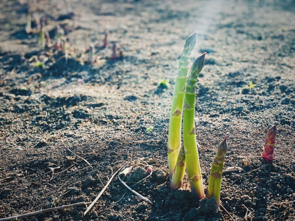 アスパラガスの栽培は非常に大変で手間がかかります。アスパラは一度植えると10年、15年と根を残す多年草のため、収穫が終わった後でも株を守りしっかりと成長させてあげなければ、翌年においしいアスパラを収穫することはできないのです。つまり収穫しない時期も丁寧に管理し続ける必要があるのです。